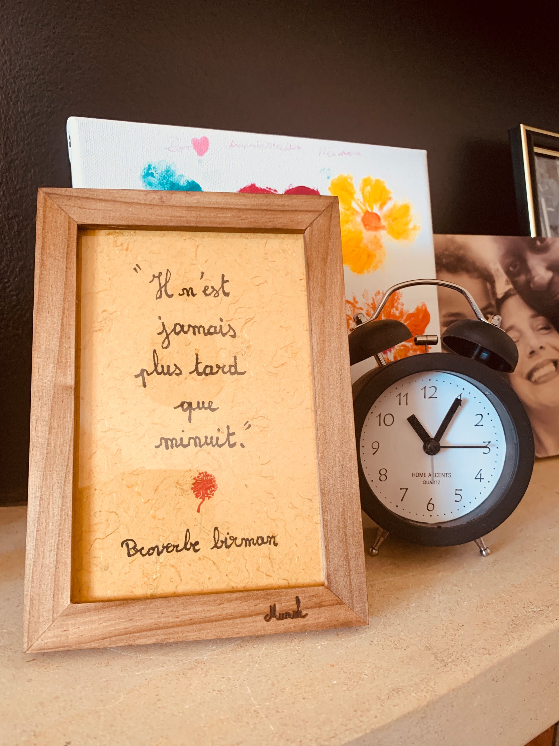 Cadre bois : "Il n'est jamais plus tard que minuit"