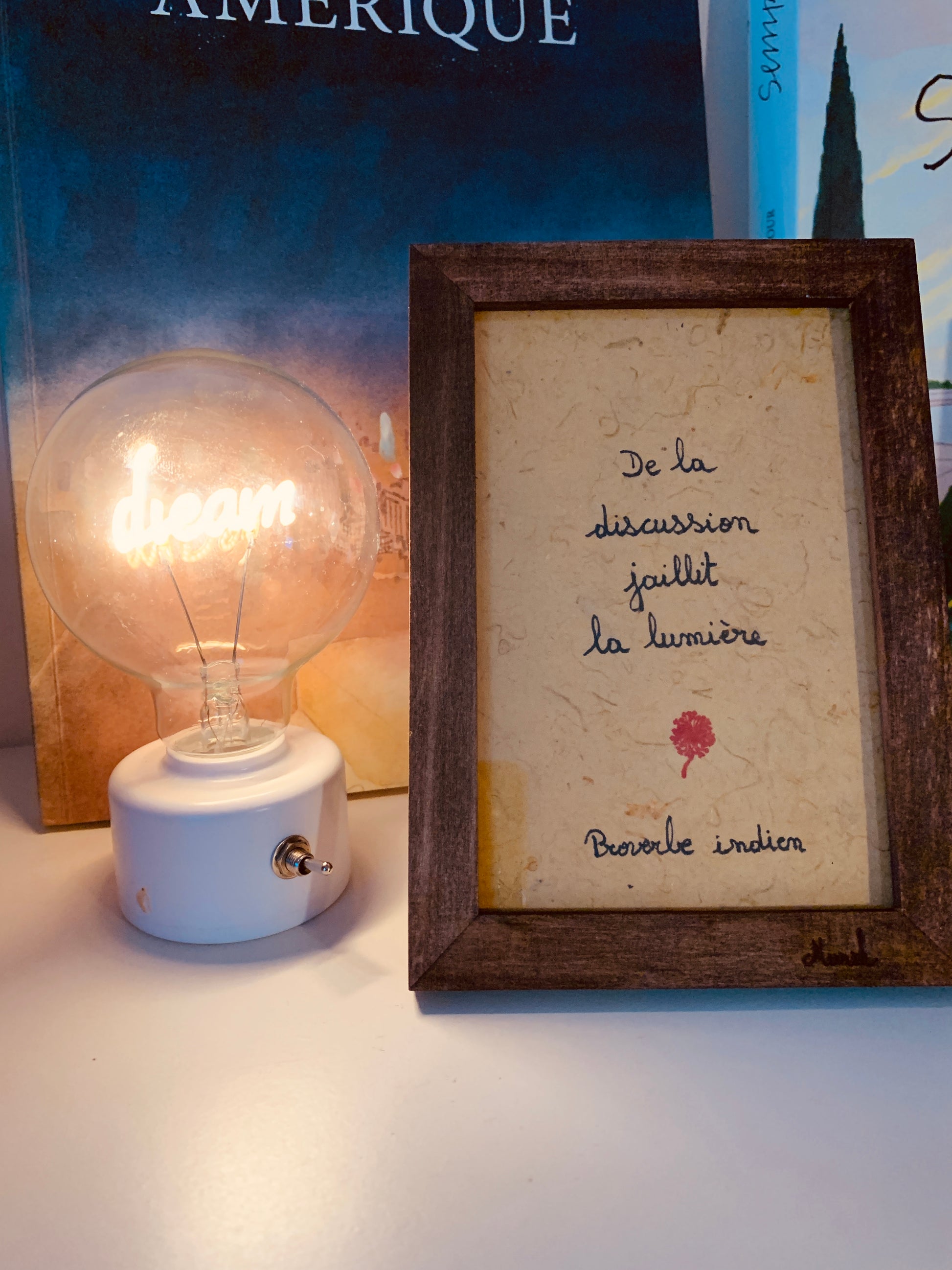Invitez la sagesse du monde dans votre intérieur avec ce cadre en bois artisanal, au format 15 x 10 cm. Chaque pièce est unique : un proverbe du monde, calligraphié à la main sur un papier népalais ou un papier en fibre de soie, est mis en valeur par un cadre façonné avec soin.
