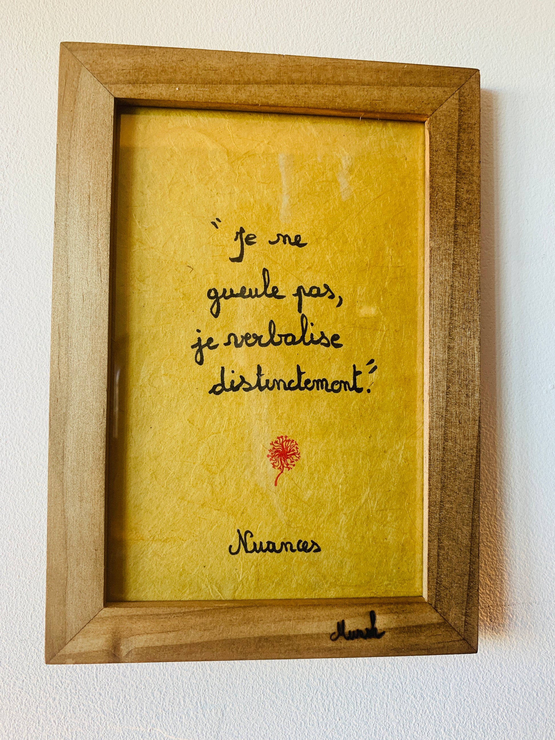 Cadre en bois : "Je ne gueule pas, je verbalise disctinctement"
