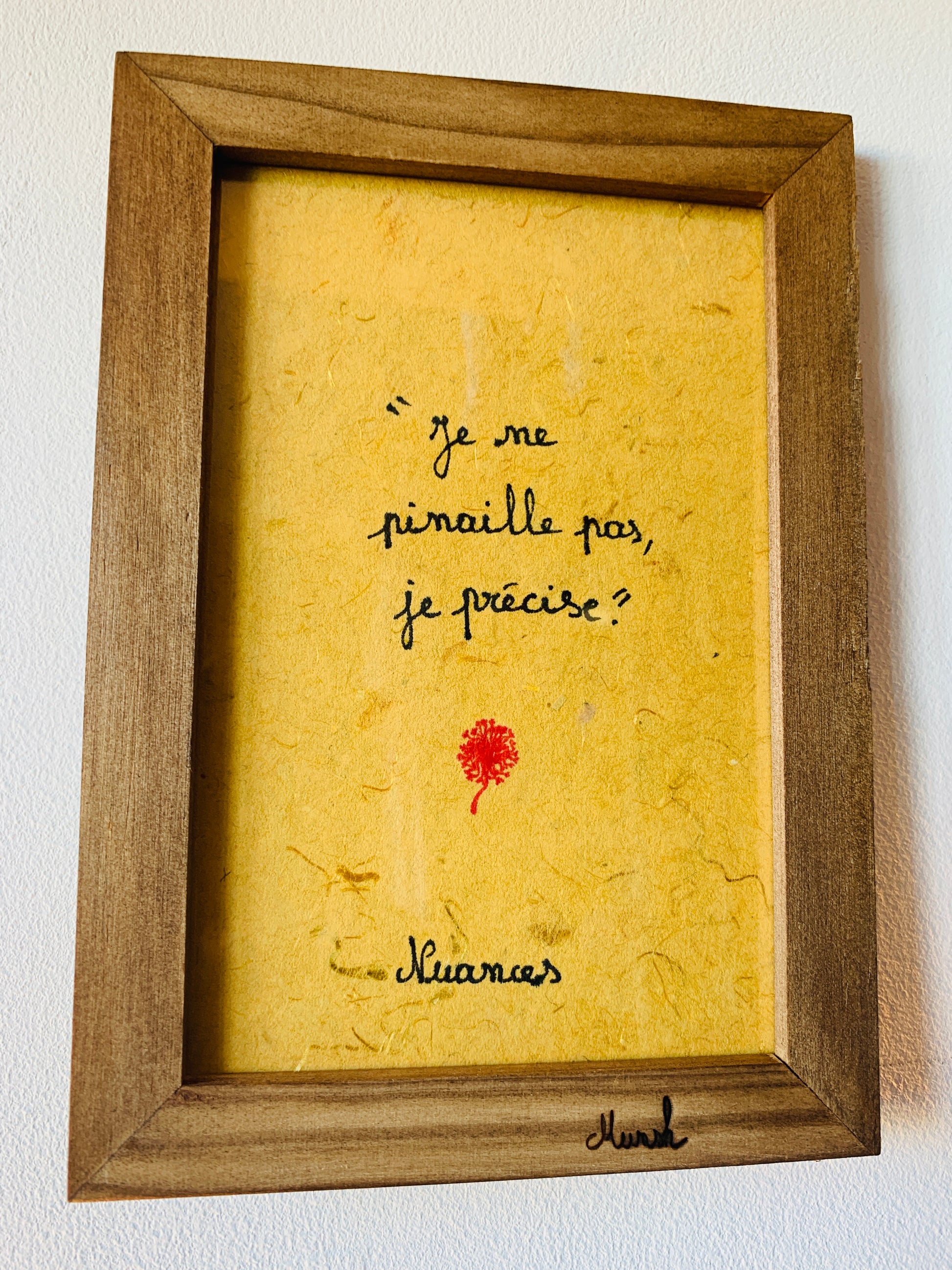 Cadre en bois : "Je ne pinaille pas, je précise"