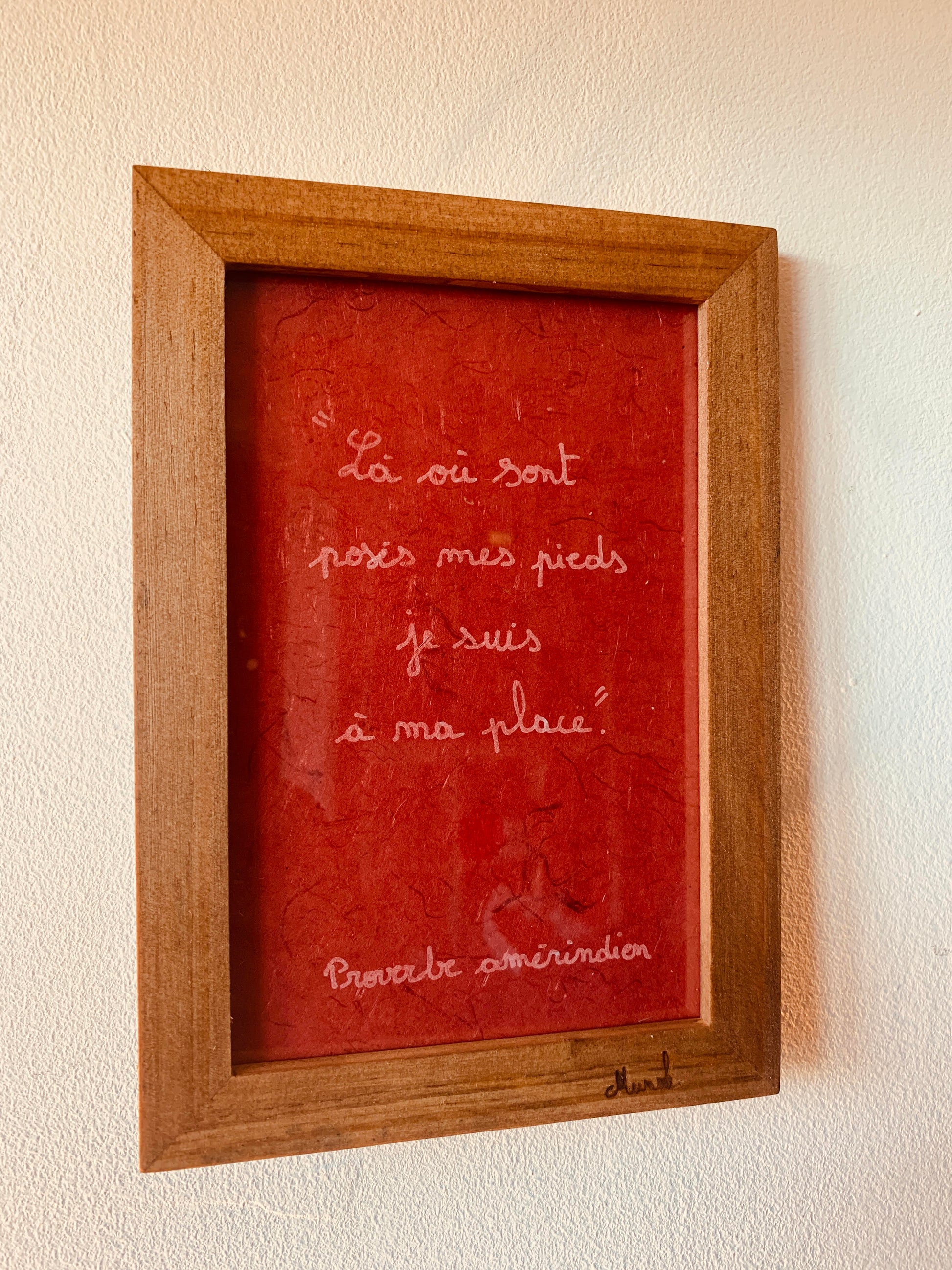 Cadre en bois : "Là où sont posés mes pieds je suis à ma place"