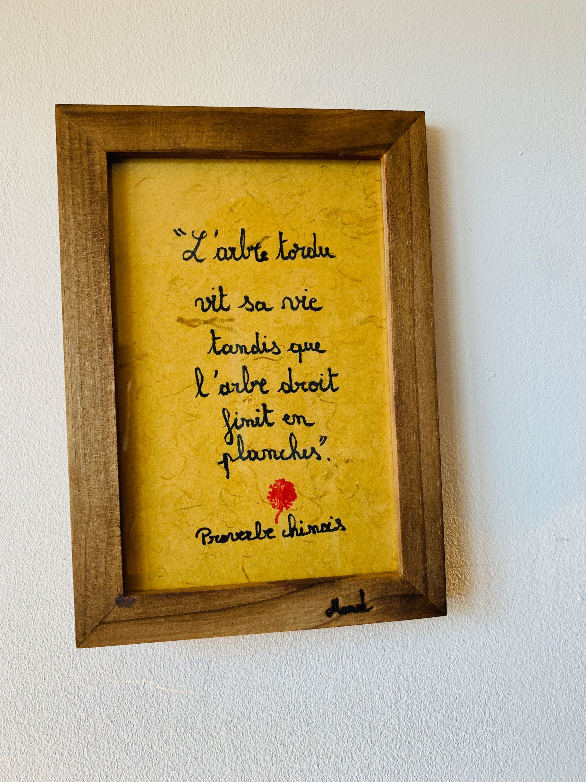 Cadre en bois : " L'arbre tordu vit sa vie tandis que l'arbre droit finit sa vie en planches "